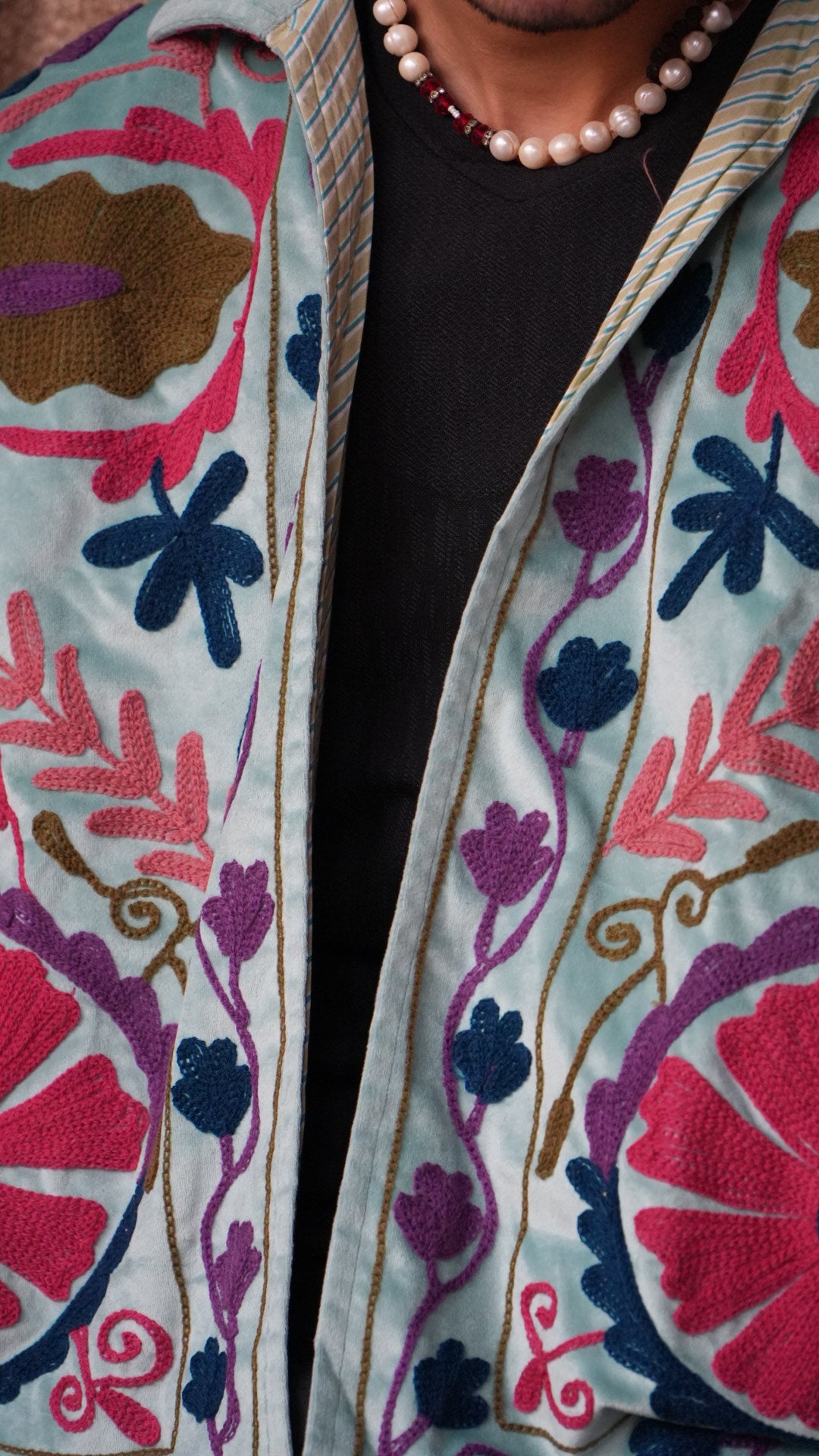 Wrap yourself in the warmth of tradition. Our Suzani Embroidered Jacket blends Sarkara’s signature Jaipuri artistry with the timeless charm of Central Asian craftsmanship. Hand-embroidered in rich, vivid threads, each jacket carries bold floral and botanical motifs that celebrate heritage while feeling effortlessly modern.