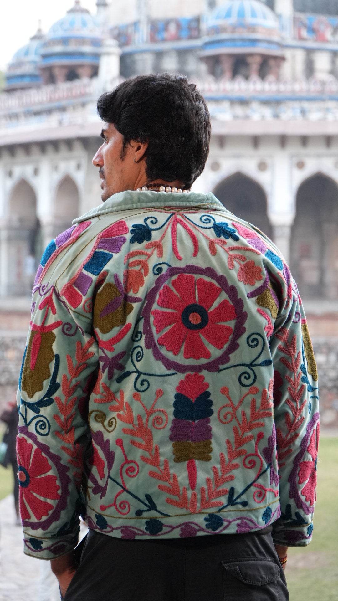• Hand-embroidered Suzani motifs • Jaipuri design sensibility • Warm, comfortable winter layering • Each piece unique, made with artisanal care